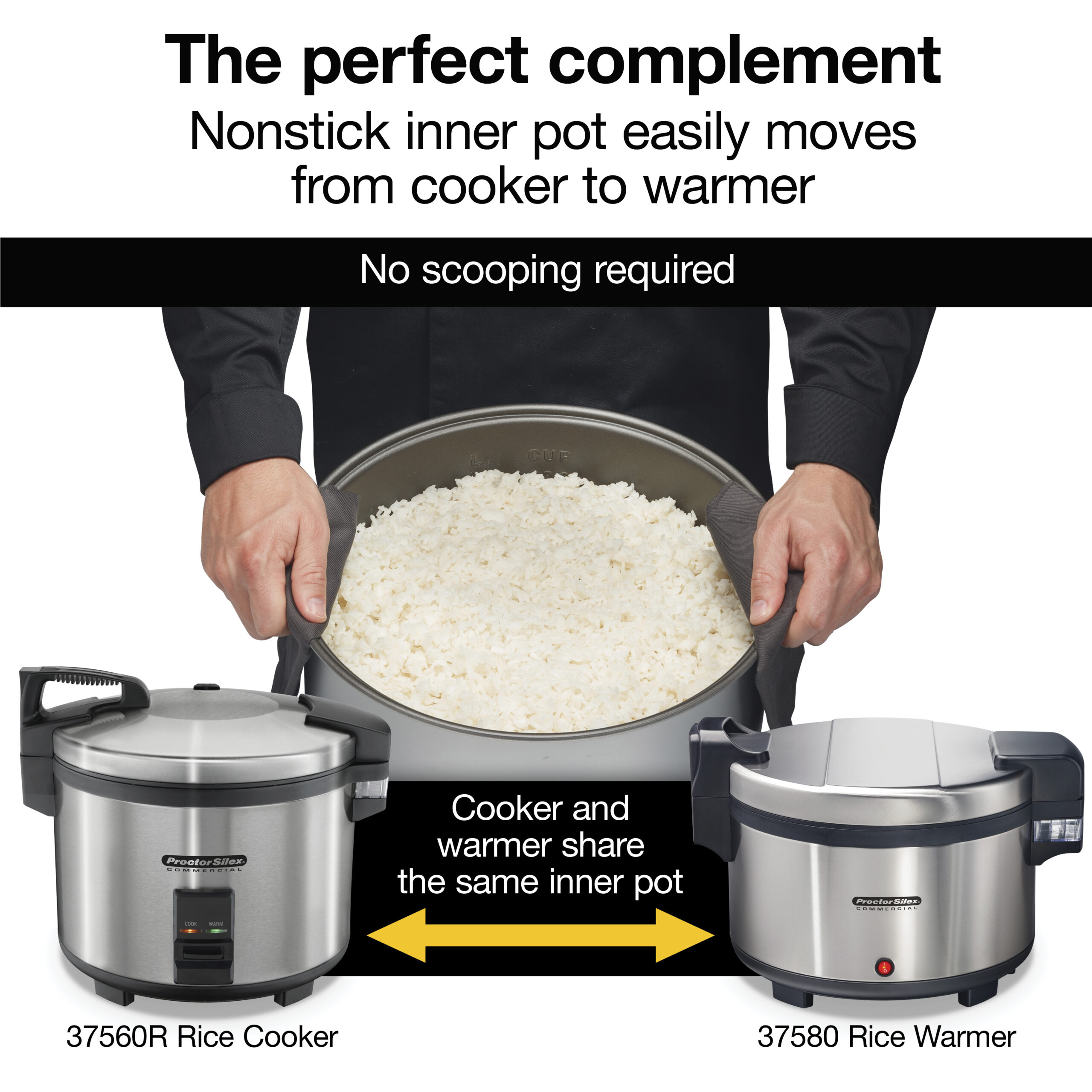 Inner pot is removable, easy to clean and is interchangeable with the Proctor Silex® Commercial Rice Cooker #37560R to make transferring rice from cooking to warming easy.