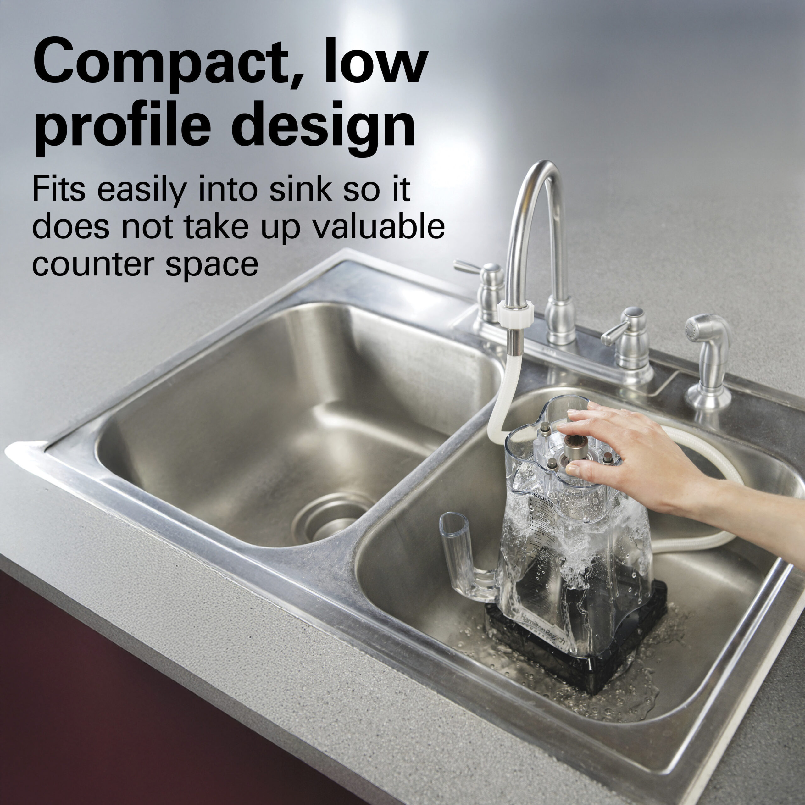 The powerful spray results in quick rinsing and reduces the need for multiple containers. This also reduces costs and saves valuable counter space. (Rinse time will vary based on the size of the jar.)
