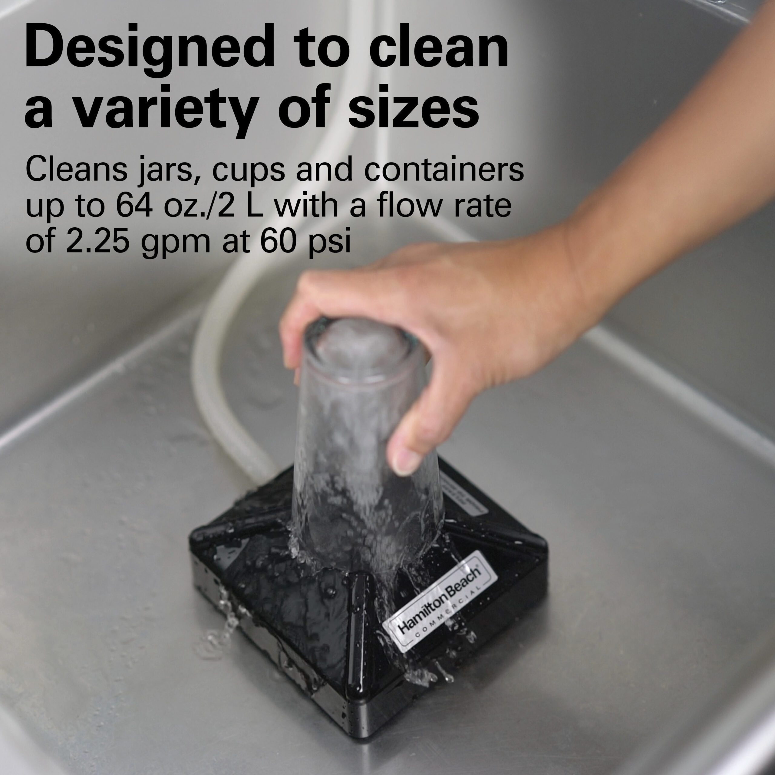Cleans jars, cups and containers up to 64oz/2L with a flow rate 2.25 gpm (@60 psi)