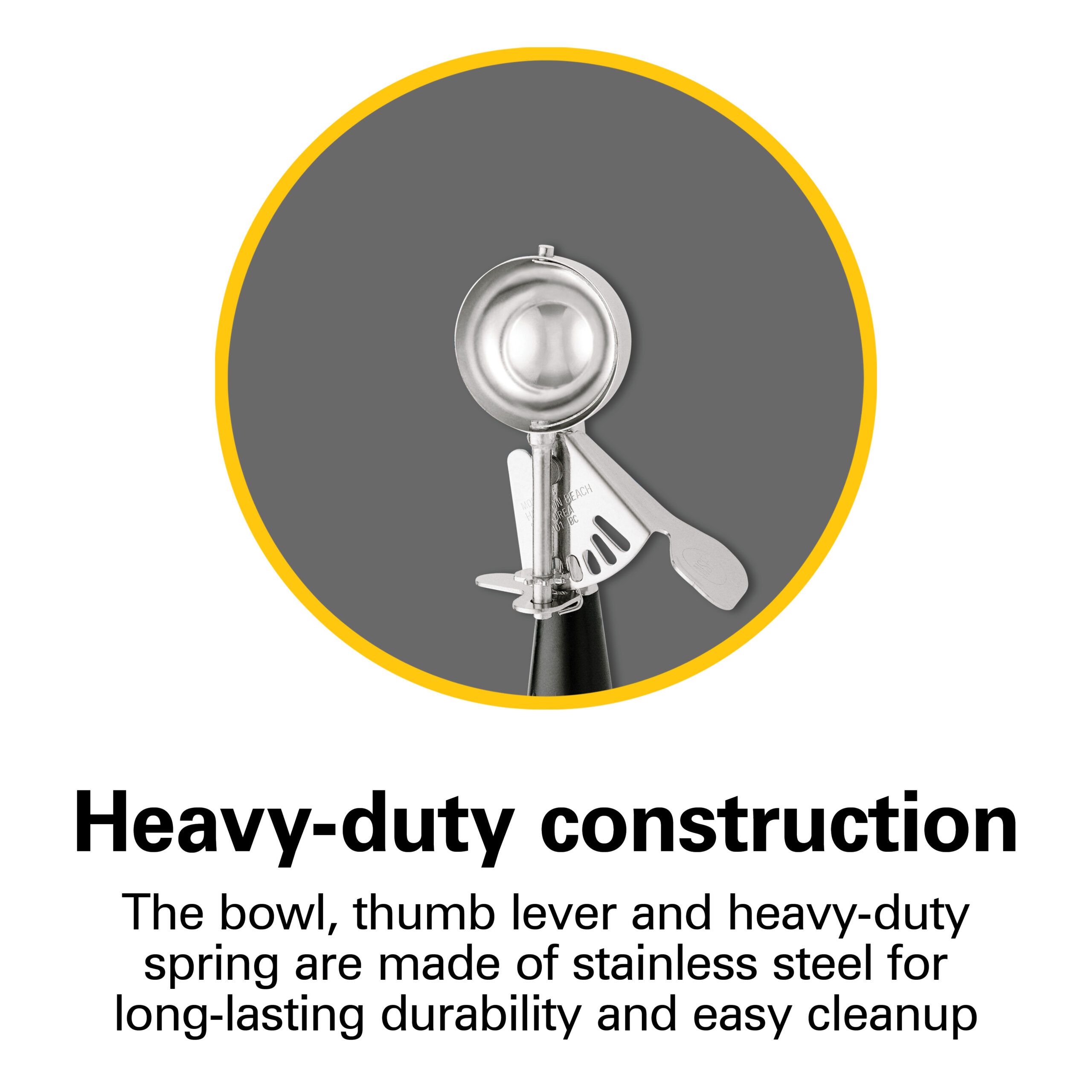 The bowl, thumb lever, and heavy-duty spring are made of stainless steel for long-lasting durability and easy cleanup. (78-08 shown) Dishwasher safe.