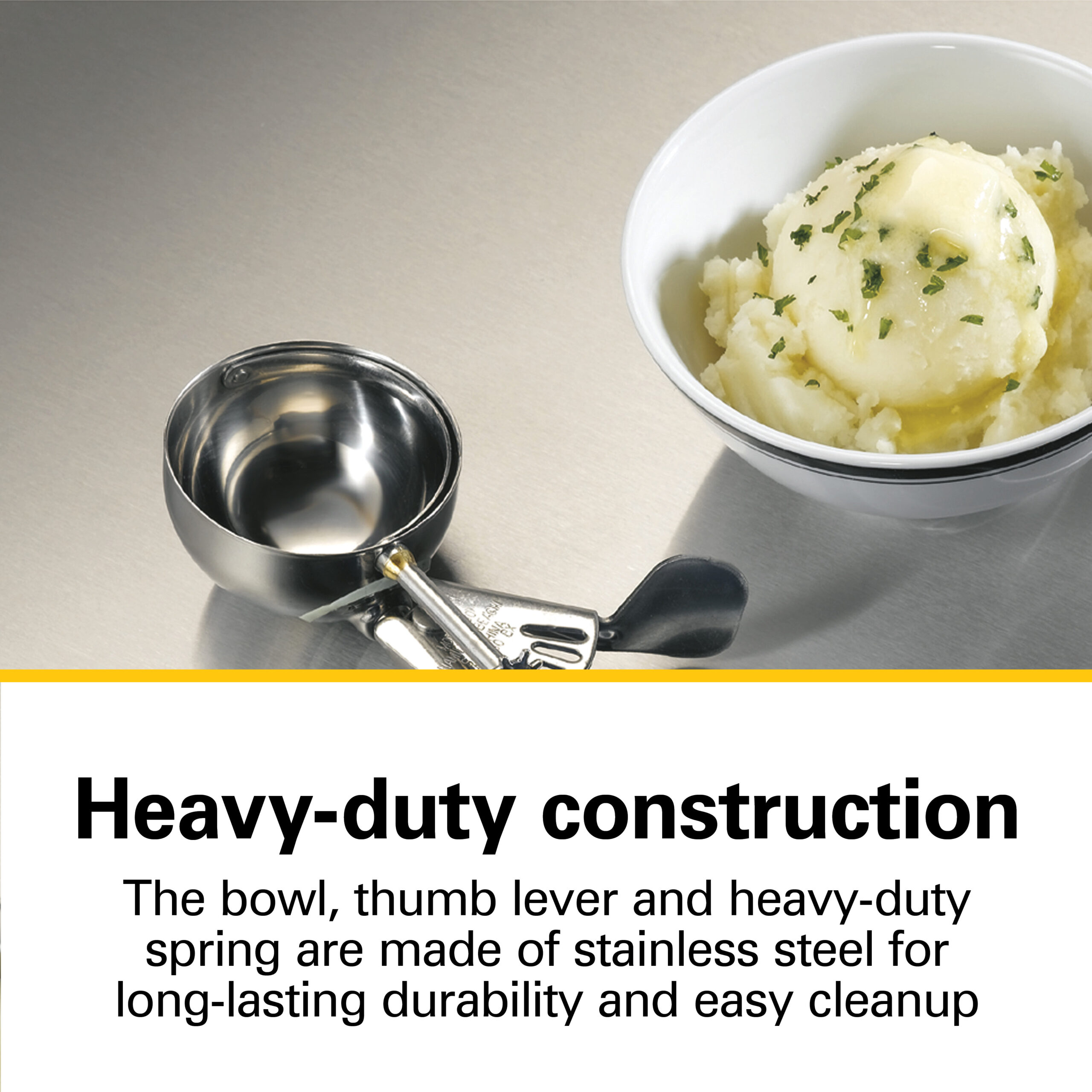 The bowl, thumb lever, and heavy-duty spring are made of stainless steel for long-lasting durability and easy cleanup. (80-16 shown) Dishwasher safe.