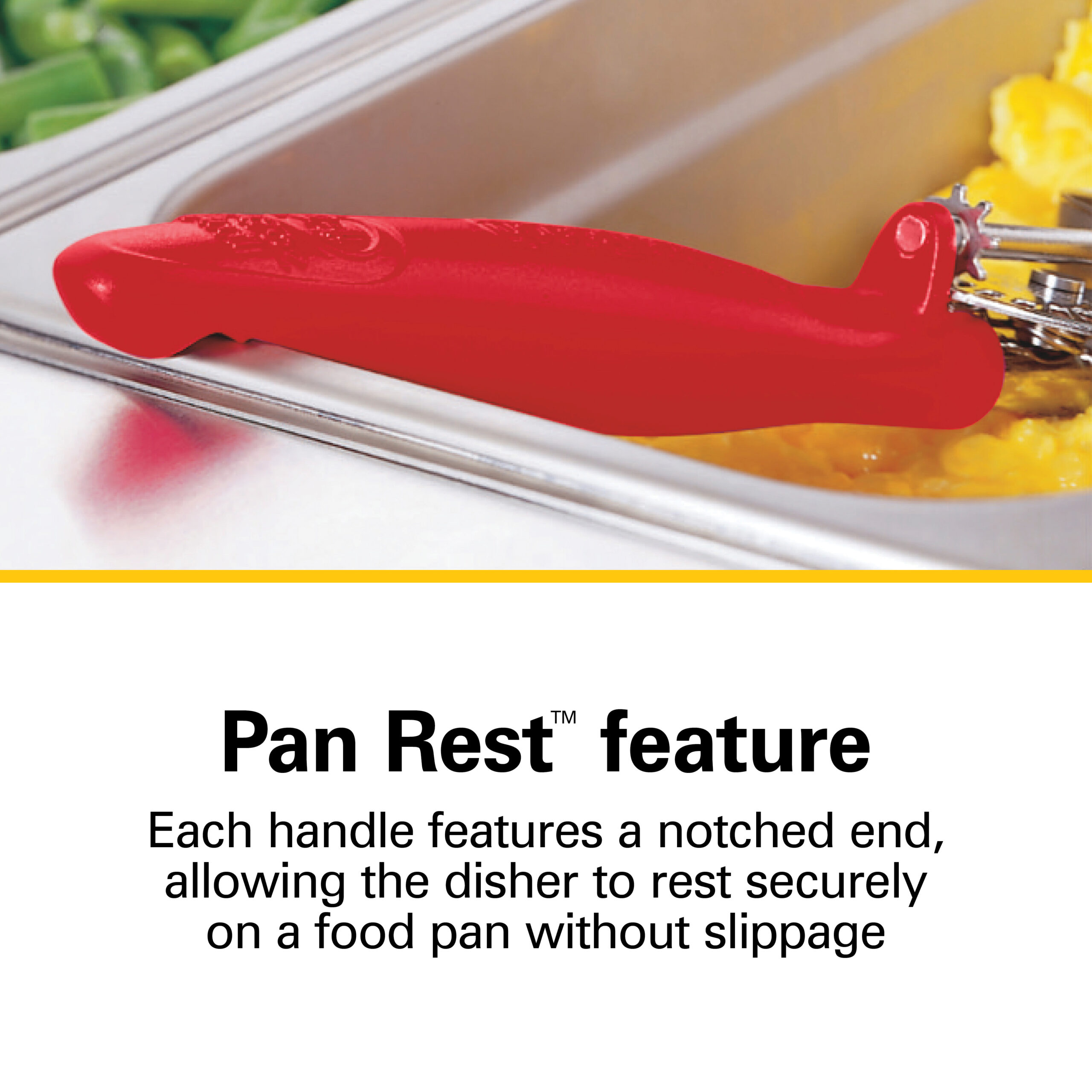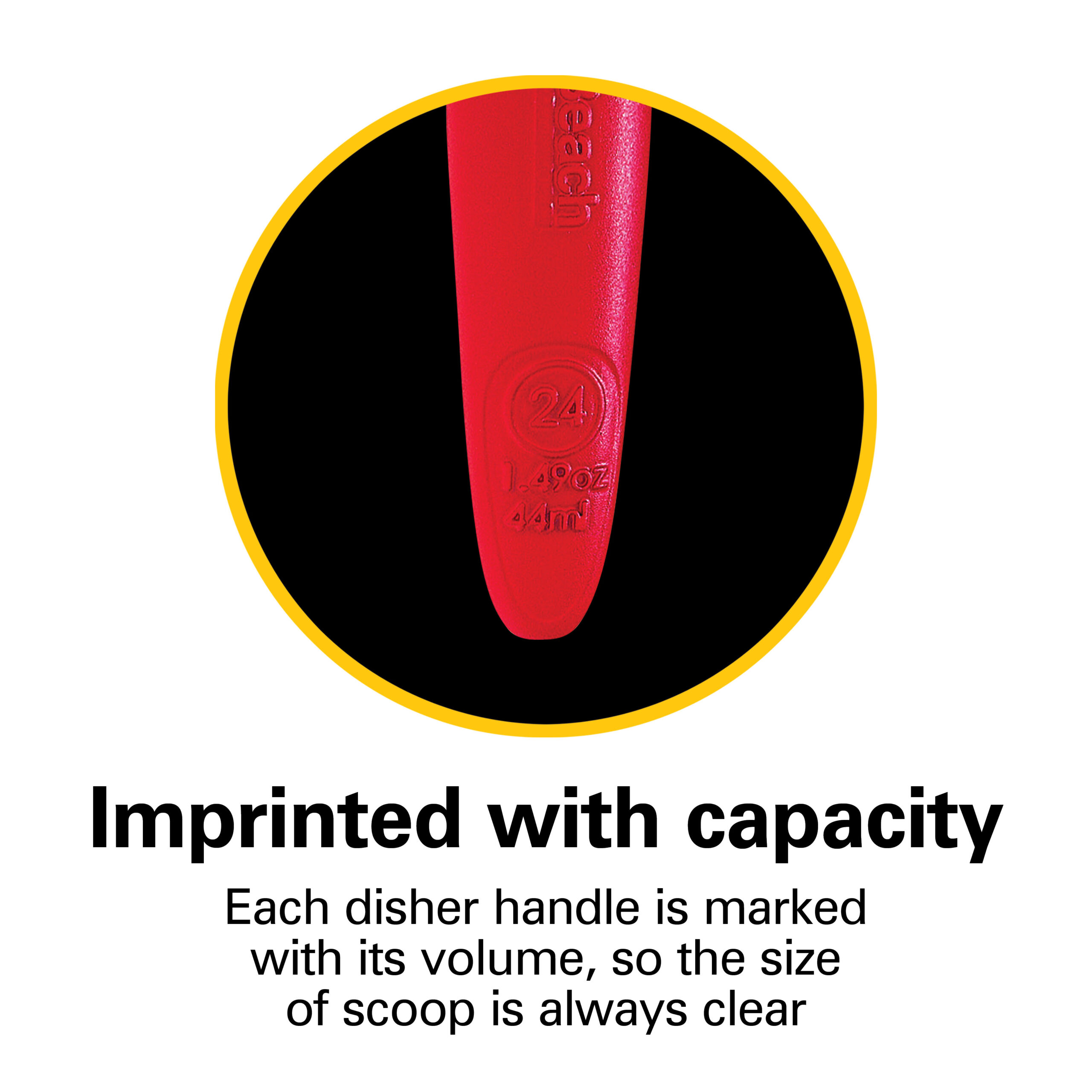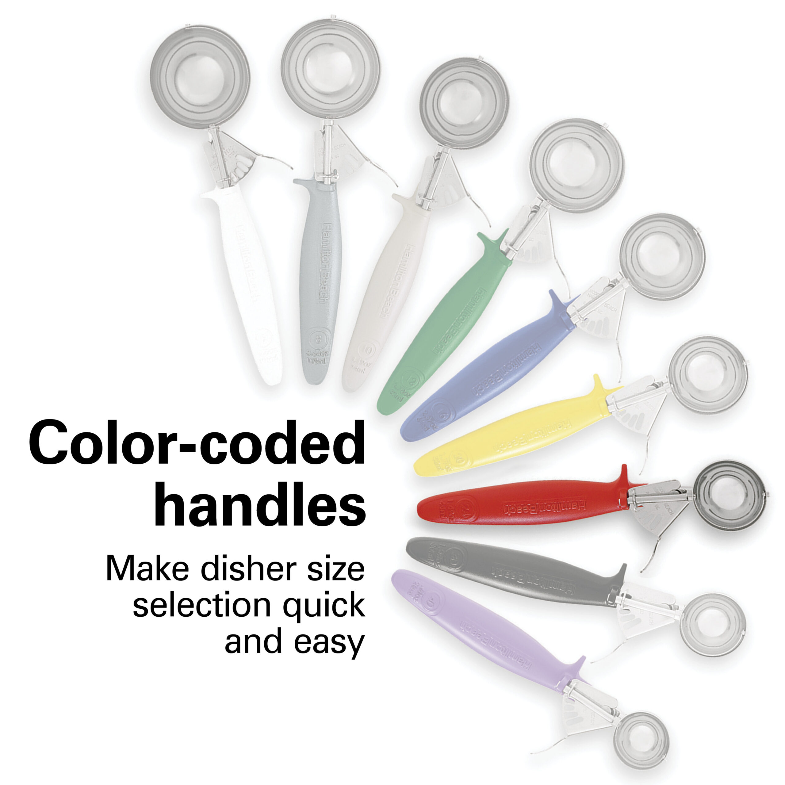 Designed for instant identification and improved service, the color-coded handles let you streamline your foodservice operation. Bright, identifiable colors help maintain portion control, and make disher size selection quick and easy.
