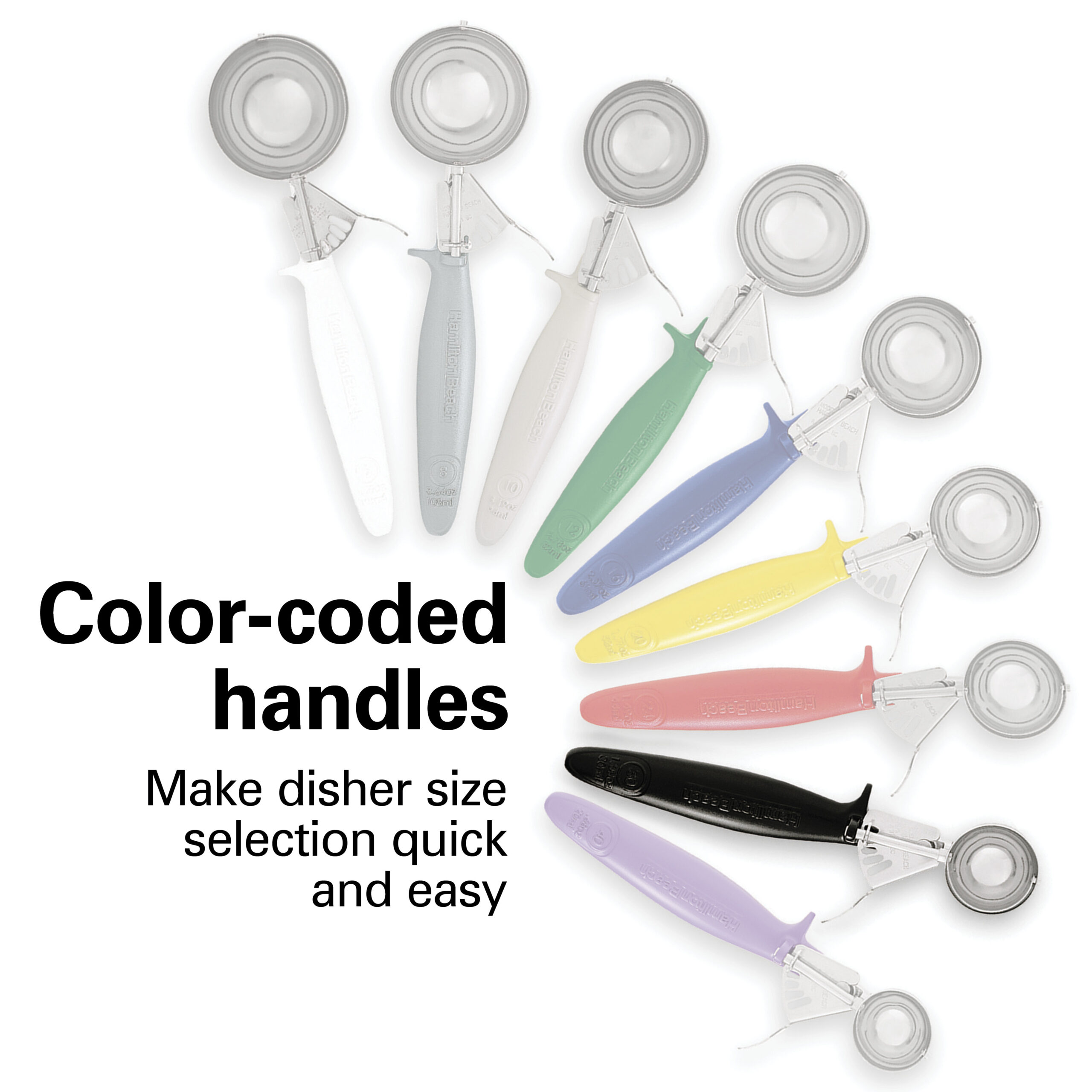 Designed for instant identification and improved service, the color-coded handles let you streamline your foodservice operation. Bright, identifiable colors help maintain portion control, and make disher size selection quick and easy.