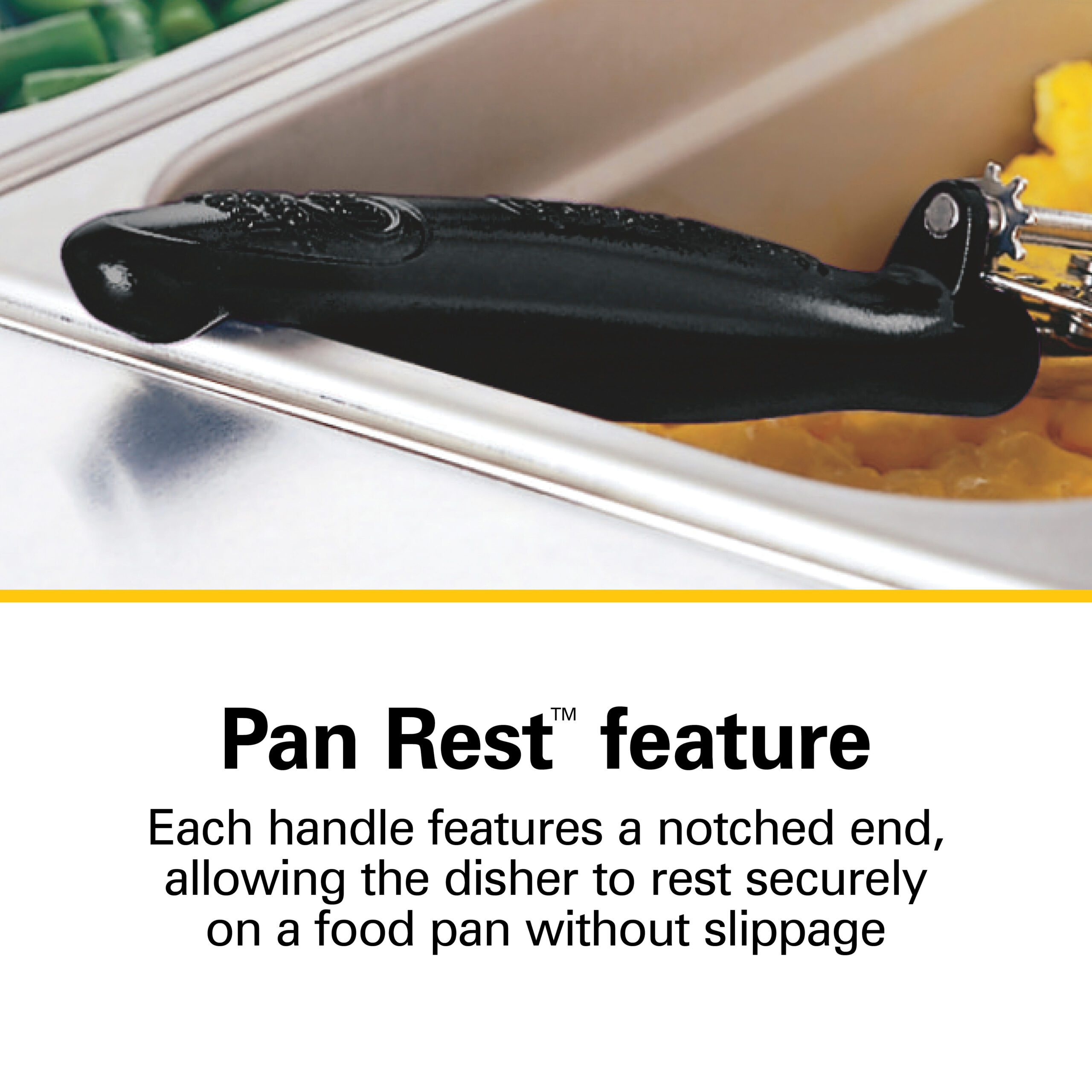 The end of each handle is notched to let users rest the disher on the food pan without worrying about slippage. (80-06 shown)