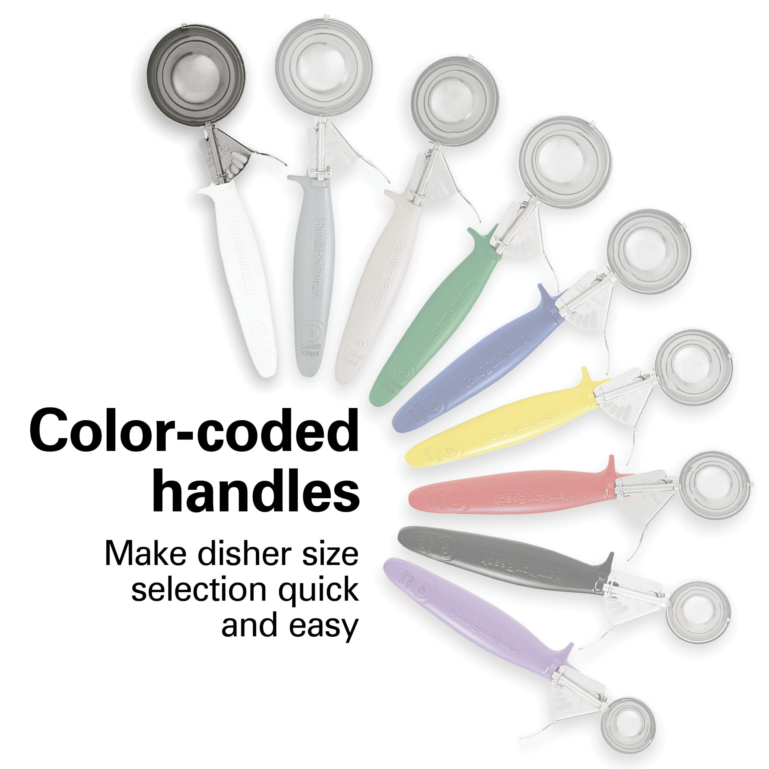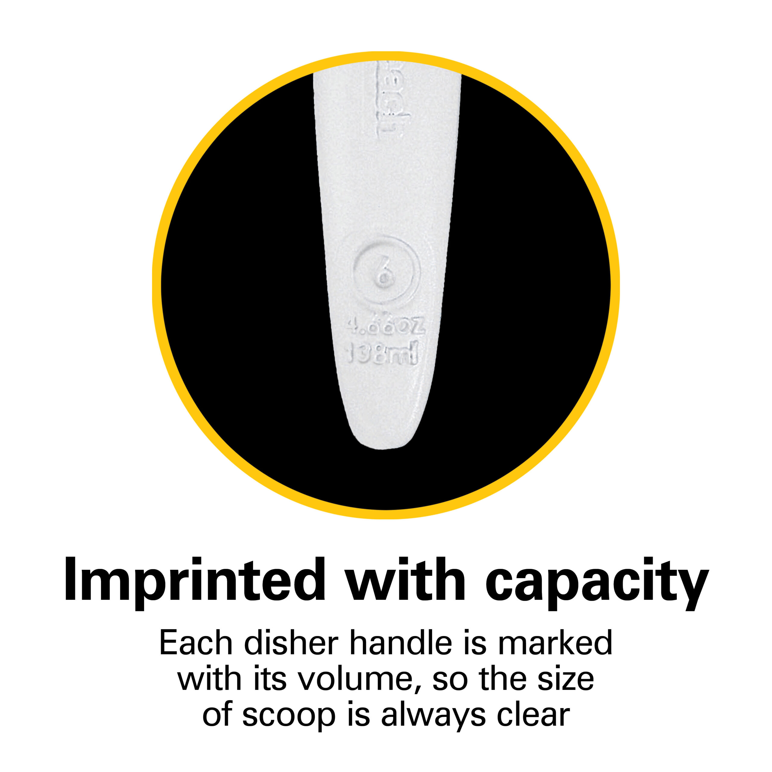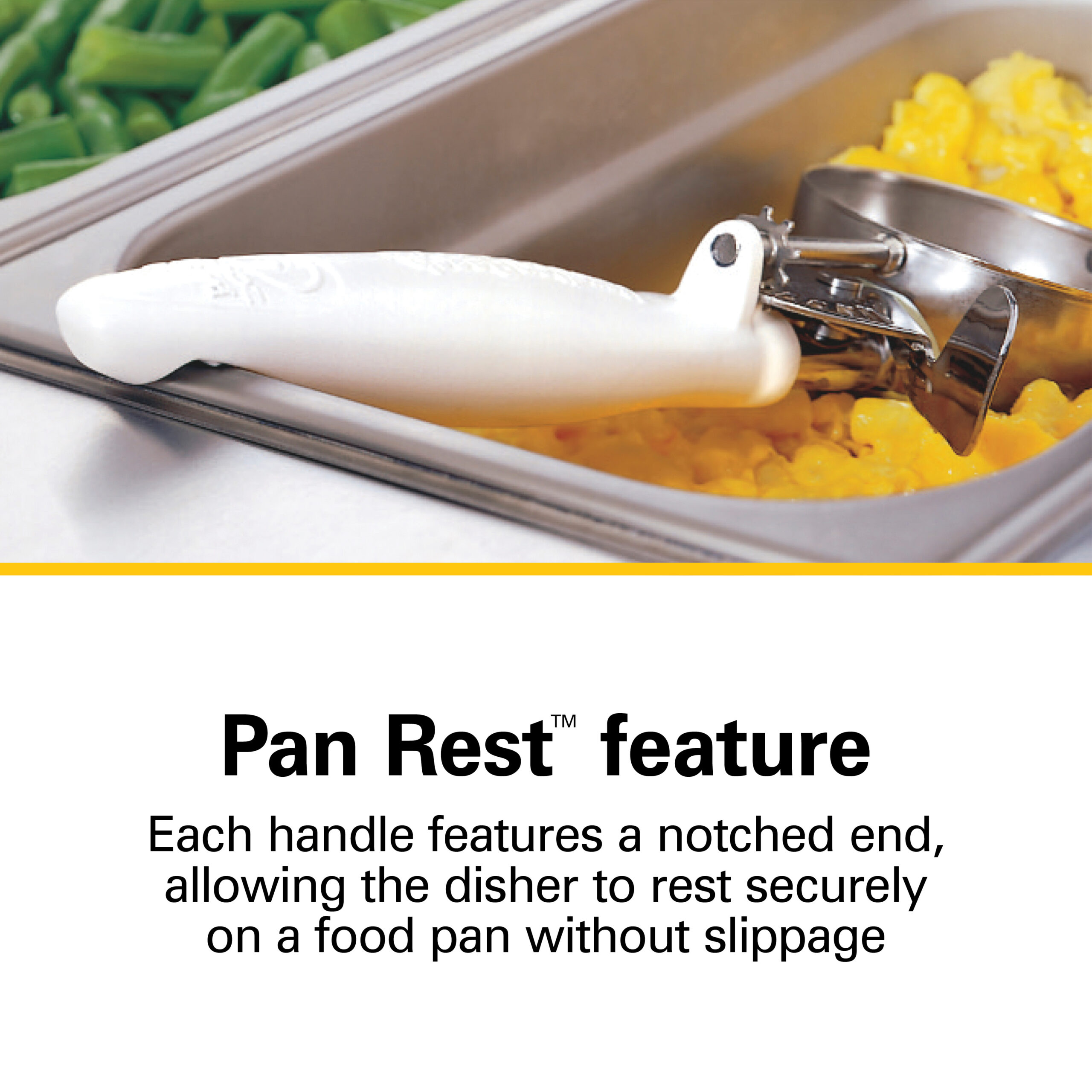 Designed for instant identification and improved service, the color-coded handles let you streamline your foodservice operation. Bright, identifiable colors help maintain portion control, and make disher size selection quick and easy.