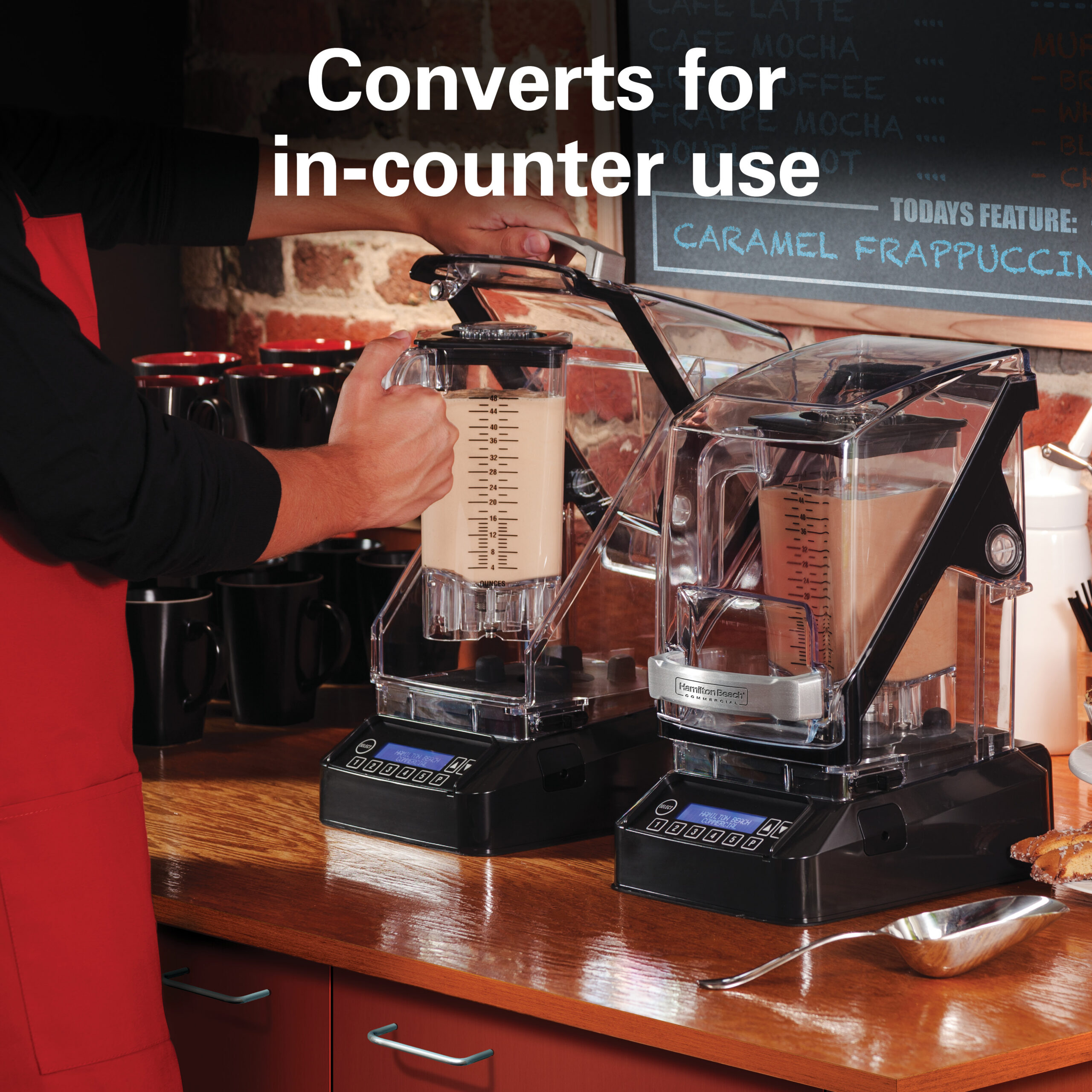 Simply removing the lower housing allows the blender to be mounted in the counter for reduced noise levels and a lower profile.