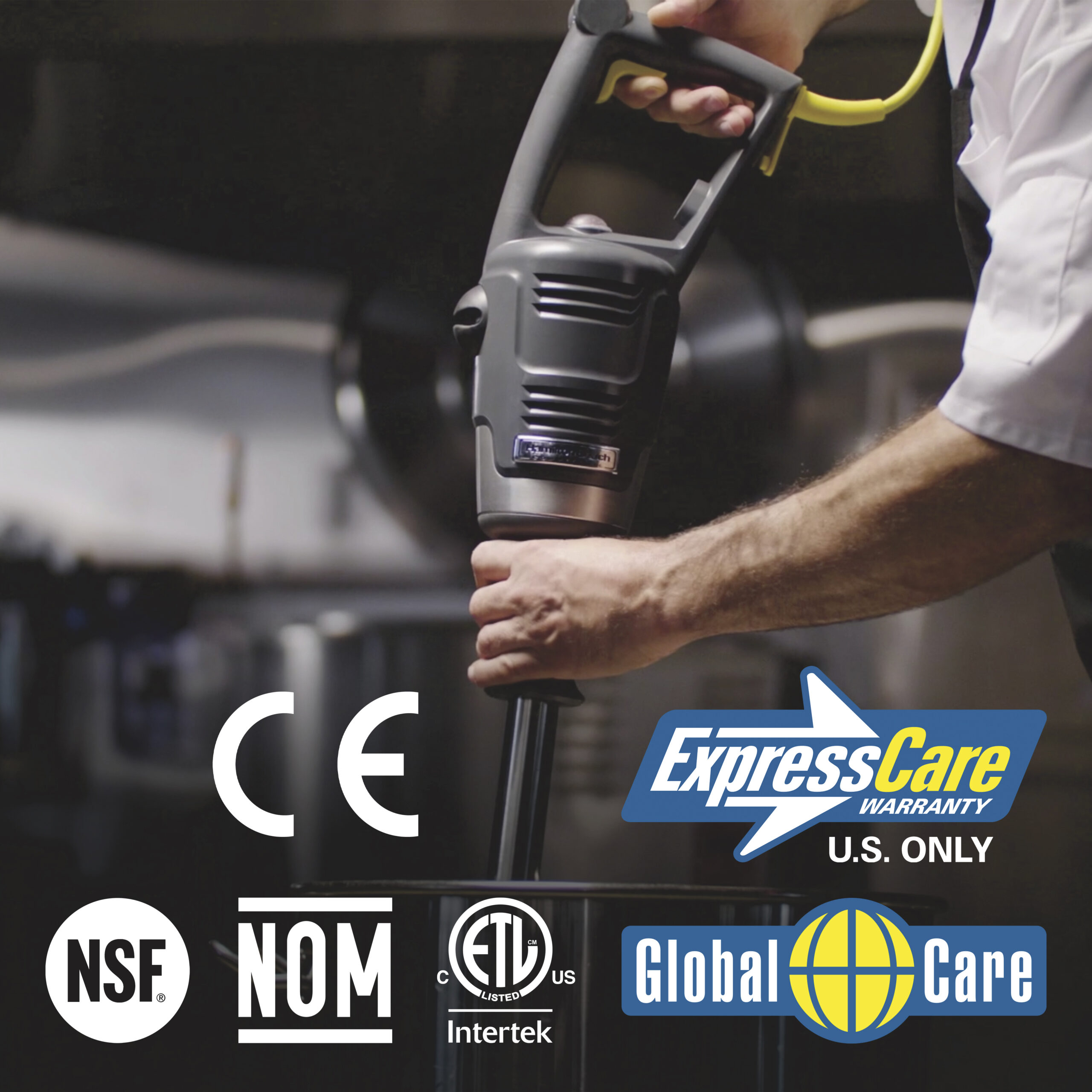2 year warranty for parts and labor is provided for the BigRig™ family of immersion blenders. This product has an Express Care Warranty covering service for the first two years, where a replacement unit will be quickly dispatched to your location if needed. To understand how our Express Care Warranty works, please click here.