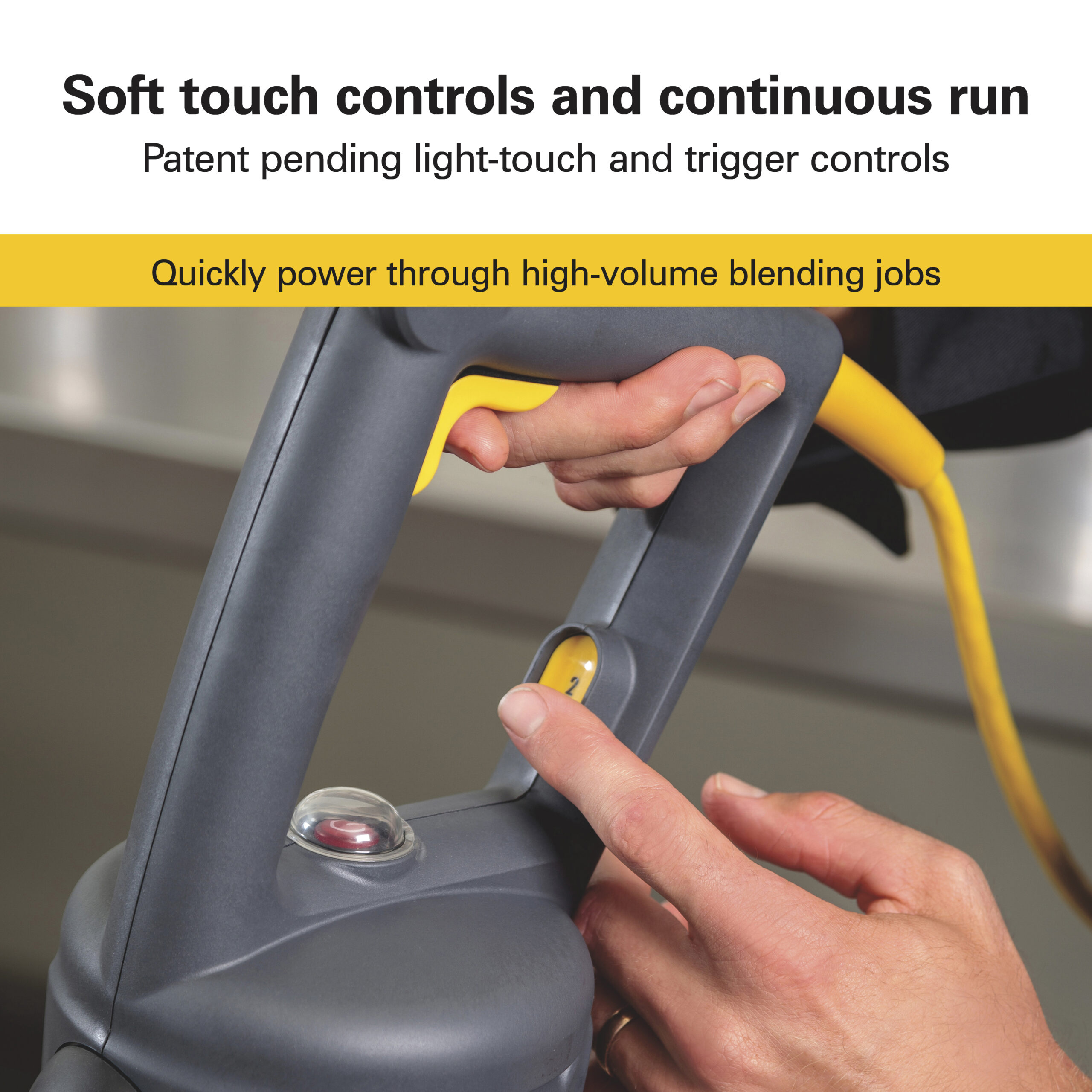 Patent pending light-touch and trigger controls with an option for continuous run operation allow operators to quickly power through high volume blending jobs.