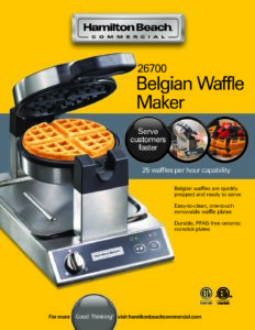With a stainless steel outer housing, high-endurance hinge and durable interior components, the Hamilton Beach Commercial Belgian Waffle Maker resists wear-and-tear to provide years of reliable performance.